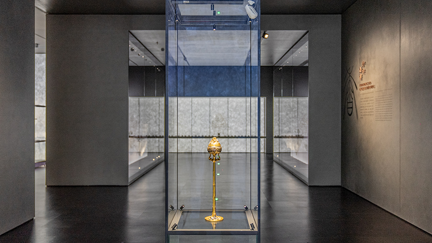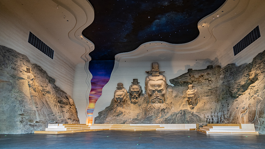 陜西歷史博物館秦漢館緊臨全國重點文物保護單位秦咸陽城遺址核心宮殿區(qū)和西漢帝陵遺址帶,是大秦文明園重要組成部分,集文物保護、陳列展覽、學(xué)術(shù)研究、科普教育、旅游服務(wù)等功能于一體。