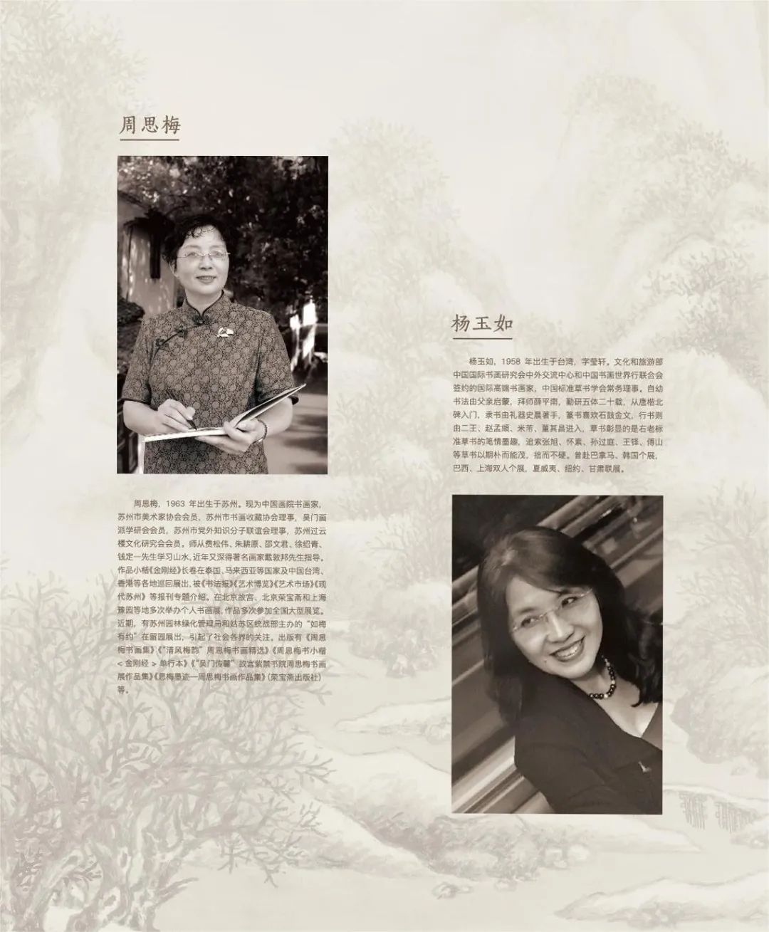 2015年,在一場“海峽兩岸寫經展”上周思梅與楊玉如一見如故,并相約聯合舉辦展覽,各取兩人名字中一字,定名“如梅有約”。2021年,鐘愛江南文化的楊玉如定居蘇州,此后二人一同追摹古人、探討筆墨、追尋江南文脈。